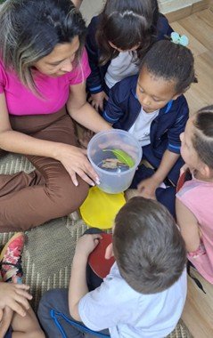 Na turma 7J da EMEI Aliomar Baleeiro Min., pertencente à Diretoria Regional de Educação de São Miguel Paulista, a curiosidade das crianças deu origem ao projeto “Vivências com Insetos”, conduzido pela professora Roberta Araujo. A proposta teve como objetivo estimular a investigação científica desde cedo, aproximando os alunos da natureza e tornando-os protagonistas do próprio aprendizado.