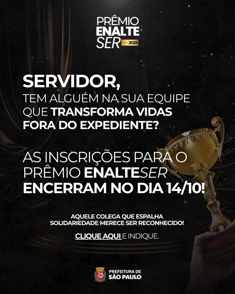 O Prêmio EnalteSER, é uma iniciativa para reconhecer servidores municipais que se destacam por ações solidárias e voluntárias fora de suas jornadas de trabalho. Esse prêmio busca valorizar e dar visibilidade a servidores que transformam vidas e contribuem positivamente para a população paulistana. As indicações são feitas pelas Secretarias, Subprefeituras e Diretorias Regionais.