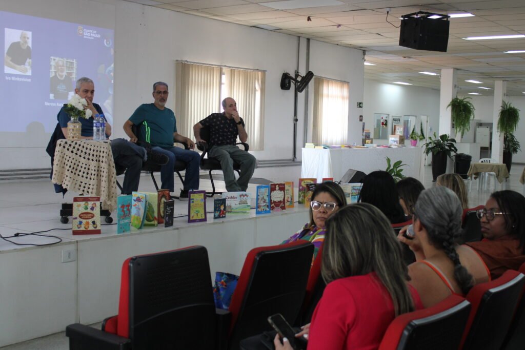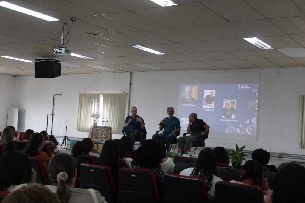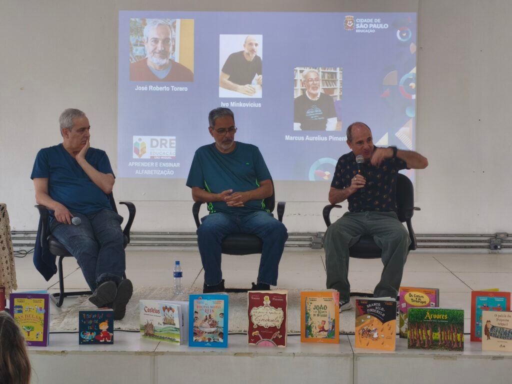 Na sexta-feira, 28 de novembro de 2025, a Diretoria Regional de Educação de São Miguel Paulista realizou o encontro de encerramento da formação optativa “Aprender e Ensinar do Ciclo de Alfabetização”. O evento marcou o fechamento de um percurso formativo significativo, celebrado com a presença especial dos autores e ilustradores José Roberto Torero, Marcus Aurelius Pimenta e Ivo Minkovicius.