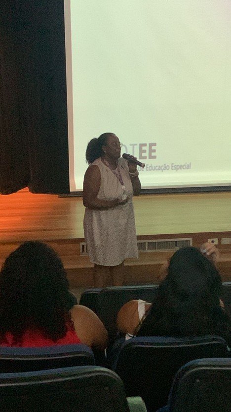A programação teve início com um momento de acolhimento e sensibilização, conduzido pela arte-educadora Telma Fernandes, por meio de um monólogo inspirado no livro Quarto de despejo de Carolina Maria de Jesus. A atividade possibilitou reflexões sobre dignidade, cuidado, proteção, escuta ética, autonomia e inclusão no cotidiano escolar, fortalecendo o compromisso com práticas educacionais inclusivas.