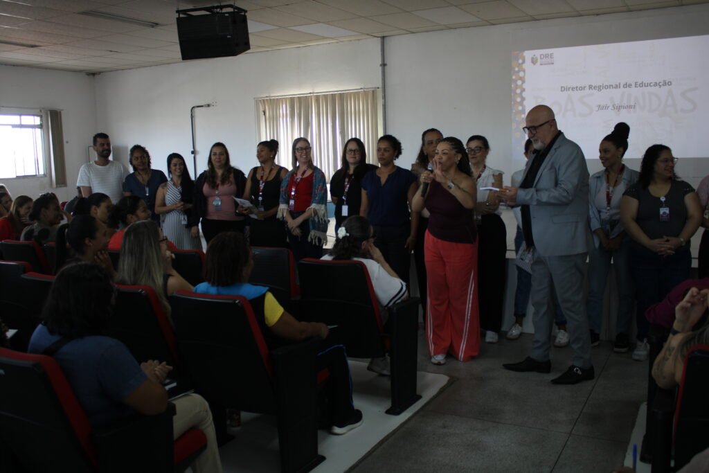 O encontro teve início com um acolhimento estético marcado por música ao vivo conduzida pelo cantor Wesley Farias e sua filha Maria Luisa, proporcionando um ambiente sensível, acolhedor e inspirador para todos os presentes. A iniciativa reforça o cuidado da DRE São Miguel em promover momentos que integrem reflexão, sensibilidade e compromisso profissional.
